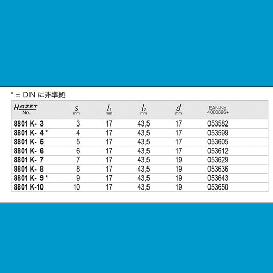 8801KK-6 ボールポイントヘックスドライバーソケット 3/8” 6mm