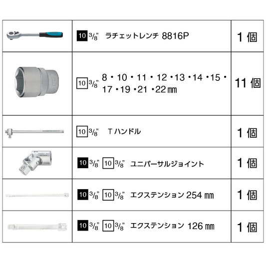 880N-1 ソケットセット 3/8ドライブ角 8816P