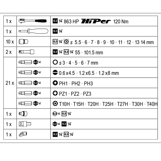 8801/6 ヘックスドライバーソケットセット 3/8” 6本組