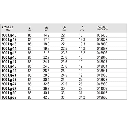 [アウトレット]900LG-22 ロングヘックスソケット 22mm 1/2"