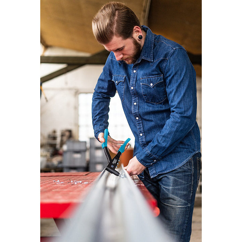 ブラインドリベットを安全かつ迅速に固定できるハンドリベッティングツール。リベット装着やピン切断も少ない力で行え、工具不要でノーズピース交換が可能です。