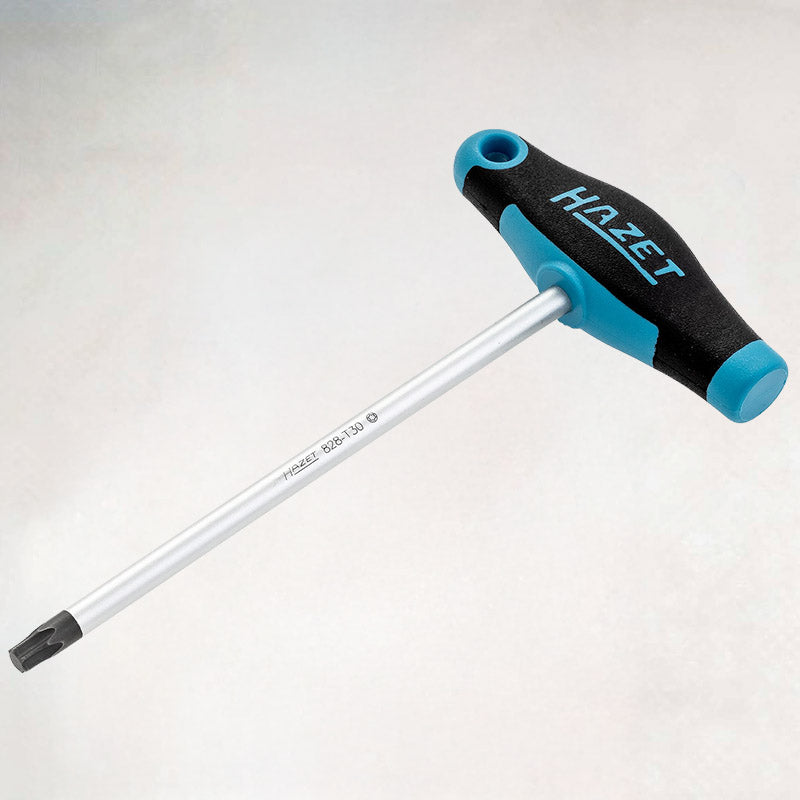 T30サイズに対応した、扱いやすいHAZET製Tハンドルトルクスドライバーです。握りやすい2コンポーネントハンドルとラウンドブレードにより、安定した操作性を発揮します。