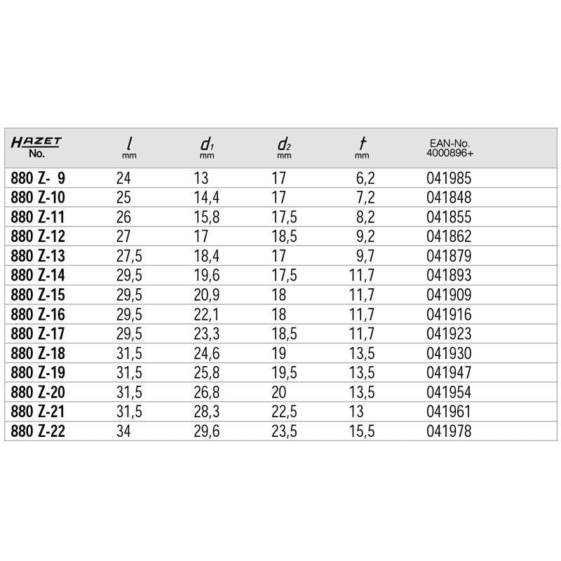 HAZET 880Z-22 ソケット(12ポイント)22mm 3/8"